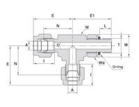 771LOBSS1/4X7/1620POS Stainless Steel 316 Positionable Male Run Tee, Let-Lok® 1/4” x Male SAE/MS Thread 7/16”-20 x Let-Lok® 1/4” |