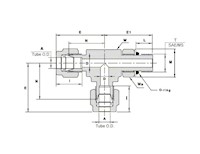 771LOBSS3/8X9/1618POS Stainless Steel 316 Positionable Male Run Tee, Let-Lok® 3/8” x Male SAE/MS Thread 9/16”-18 x Let-Lok® 3/8” |