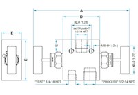 M21S104NSSVT SS 316L Remote Mount 2 Way Manifold, 1/4” Female NPT Thread |