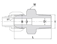 748HFSS1/4X1/2X Stainless Steel 316 Connector, 37º Flare 1/4” x Male NPT 1/2”-14 |