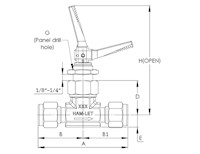 H1200BL1/8 H1200 Series, Brass Toggle Valve, 1/8” Let-Lok® Tube Fitting x 1/8” Let-Lok® Tube Fitting |
