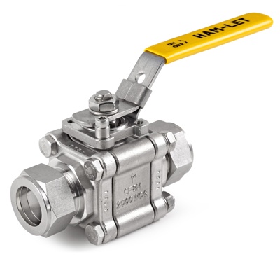 Item # H500SSL1 , H500 Series, 3 Piece SS Ball Valve, 1” Let-Lok® Tube Fitting x 1” Let-Lok® Tube Fitting
