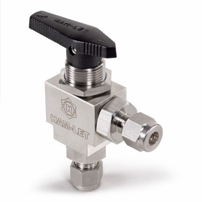 Item # H6800SSL3MMIPSA , H6800 Series, 3 Piece Angled Pattern SS Ball Valve, 3mm Let-Lok® Tube Fitting x 3mm Let-Lok® Tube Fitting