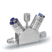 Item # HMB14VKLCLCGM4GF4GF4 , HMB Series, Multi-Port Monoblock Actuated Valve ,Swivel Male 1/4” x Swivel Female 1/4” x Swivel Female 1/4”