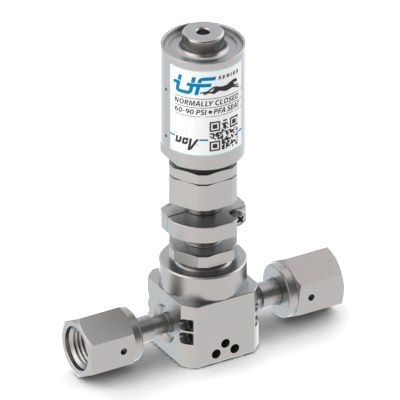 Item # UF204VFLCGF4FH , UF Series - Ultra Fast, Actuated 2 Port UCV, Extended Bonnet with Fin, swivel Female Face Seal, 1/4”