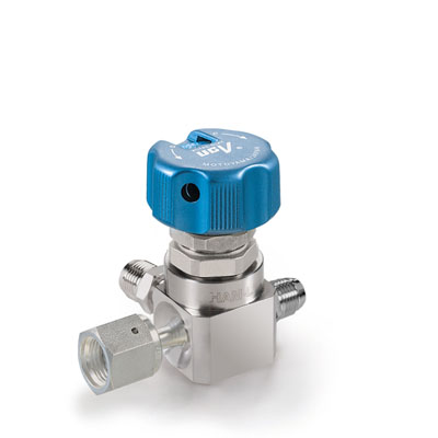 Item # HM304VKLRGF4GM4GM4 , HM Series, Low Pressure UHP Manual 3 Port Valve, Swivel Female 1/4” x Swivel Male 1/4” x Swivel Male 1/4”