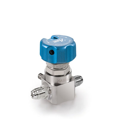 Item # HM304VKLRGM4BW4GM4 , HM Series, Low Pressure UHP Manual 3 Port Valve, Swivel Male 1/4” x Short Buttweld 1/4” x Swivel Male 1/4”