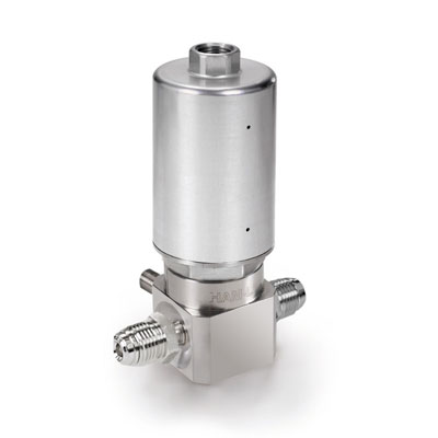 Item # HM314VKCBW4GM4GM4 , HM Series, Low Pressure UHP Actuated 3 Port Valve, Short Buttweld 1/4” x Swivel Male 1/4” x Swivel Male 1/4”
