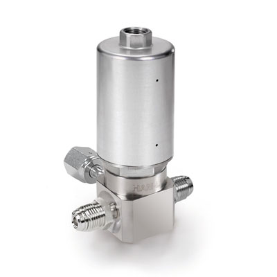 Item # HM314VKCGF4GM4GM4 , HM Series, Low Pressure UHP Actuated 3 Port Valve, Swivel Female 1/4” x Swivel Male 1/4” x Swivel Male 1/4”