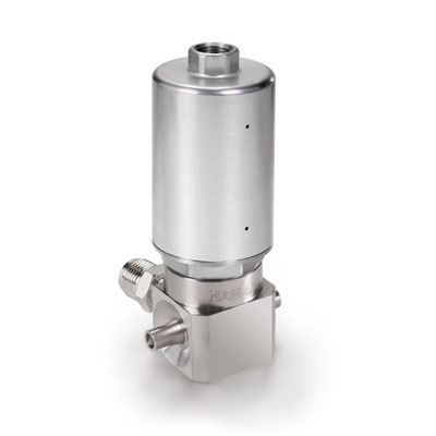 Item # HM314VKCGM4BW4BW4 , HM Series, Low Pressure UHP Actuated 3 Port Valve, Swivel Male 1/4” x Short Buttweld 1/4” x Short Buttweld 1/4”