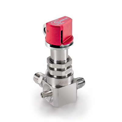 Item # HM324VKLQBW4GM4GM4ISLT , HM Series, Low Pressure UHP Manual 3 Port Valve, Short Buttweld 1/4” x Swivel Male 1/4” x Swivel Male 1/4”