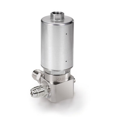 Item # HM344VKCGM4GM4BW4 , HM Series, Low Pressure UHP Actuated 3 Port Valve, Swivel Male 1/4” x Swivel Male 1/4” x Short Buttweld 1/4”