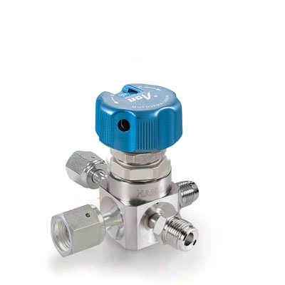 Item # HM434VKLRGF4GF4GM4GM4 , HM Series, Low Pressure UHP Manual 4 Port Valve, Swivel Female 1/4” x Swivel Female 1/4” x Swivel Male 1/4” x Swivel Male 1/4”