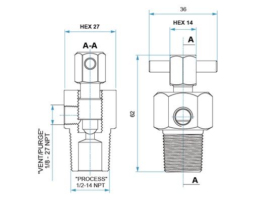 SS 316L Bleed Valve, 1/2” Male NPT Thread