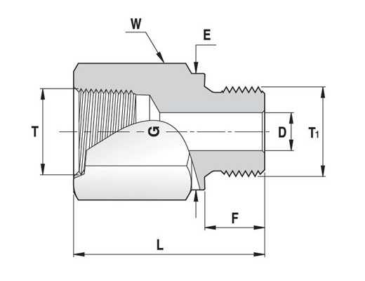 120HNGSS1, St. St. 316 Pipe fitting, Adapter, Female NPT Thread 1” x Male ISO Parallel Thread 1”