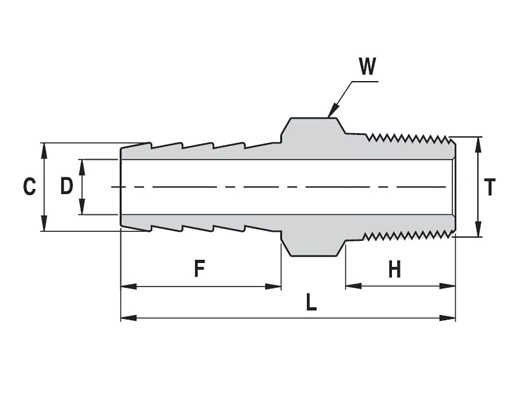 130HMSS3/8X3/8, St. St. 316 Pipe Fitting, Hose Connector 3/8” x Male NPT Thread 3/8”