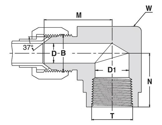 750HFSS1/2X1/2X, Stainless Steel 316 Elbow, 37º Flare 1/2” x Female NPT 1/2”