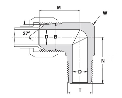 749HFSS1X1X, Stainless Steel 316 Elbow, 37º Flare 1” x Male NPT 1”