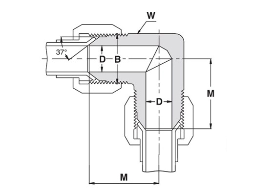 Stainless Steel 316, 37º Flare Union Elbow 1/2”