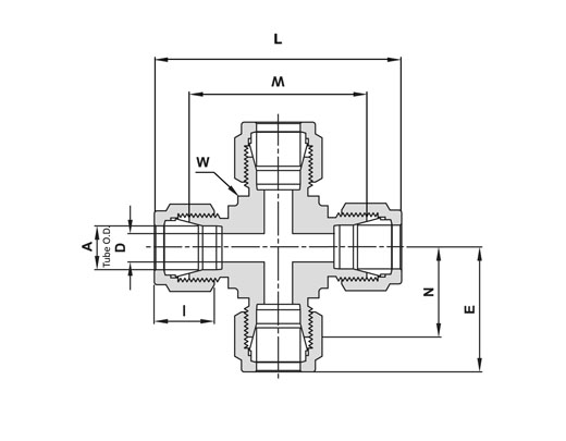 7102HLSS8MM, St. St. 316 Union Cross, One-Lok® Tube Fitting 8mm