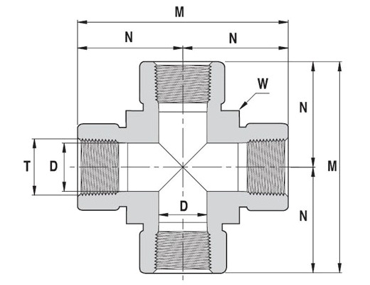 St. St. 316 Pipe Fitting, Union Cross, Female NPT Thread 1”