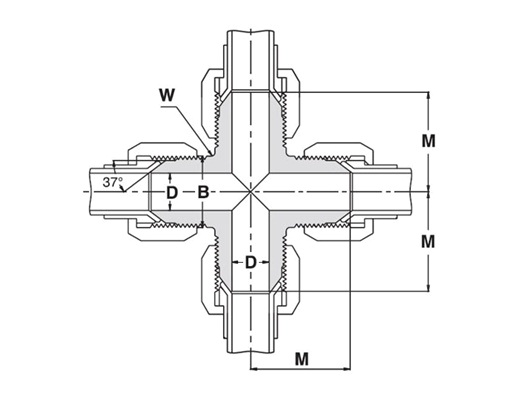 7102HFLSS3/4X, Stainless Steel 316, 37º Flare Union Cross 3/4”