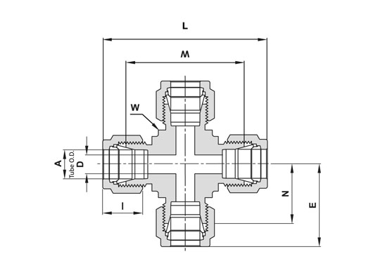 7102LB16MM, Brass Union Cross, Let-Lok® Tube Fitting 16mm