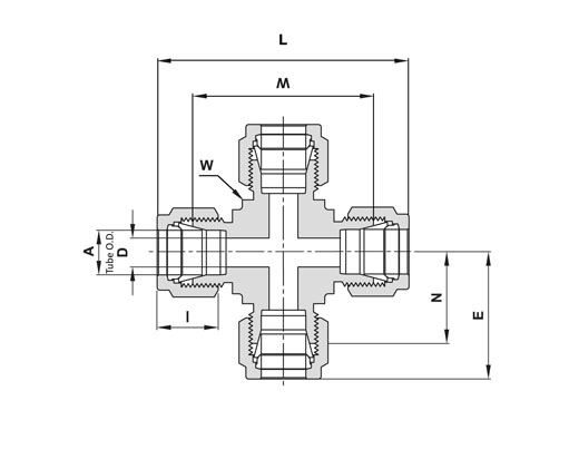St. St. 316 Union Cross, Let-Lok® Tube Fitting 3/8”