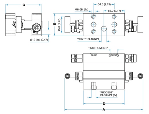 M40H154NFSSVAT, SS 316L Direct Mount 4 Way Manifold, 1/4” Female NPT Thread to Flange