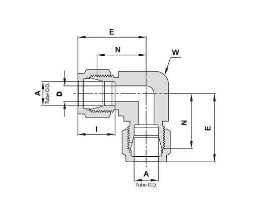 765HLSS7/8, St.St. 316 Union Elbow, One-Lok® Tube Fitting 7/8”
