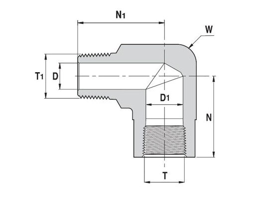 St. St. 316 Pipe Fitting, Street Elbow, Female NPT Thread 1” x Male NPT Thread 1”