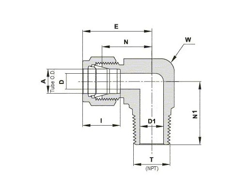 Brass Male Elbow, Let-Lok® Tube Fitting 1/16” x Male NPT Thread 1/8”