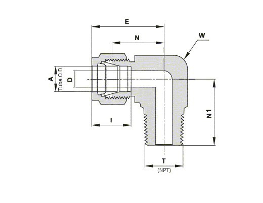 769LM1/2X1/2, Alloy 400 Male Elbow, Let-Lok® Tube Fitting 1/2” x Male NPT Thread 1/2”
