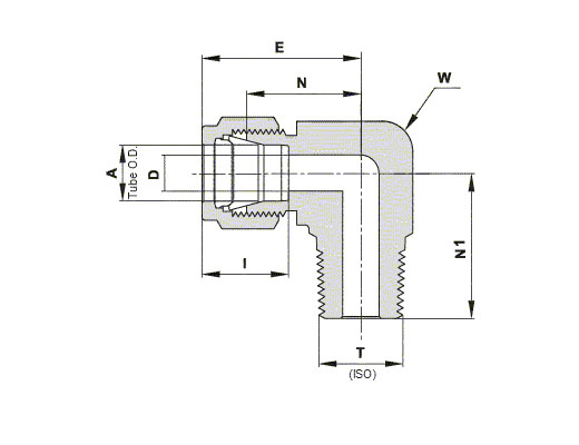 St.St. 316 Male Elbow, Let-Lok® Tube Fitting 15mm x Male ISO Tapered Thread 1/2”