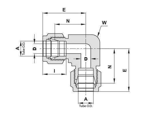 765LHC3/8, Alloy C-276 Union Elbow, Let-Lok® Tube Fitting 3/8”