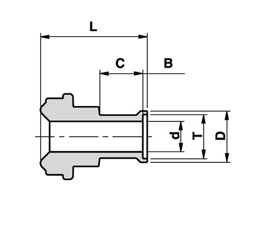 SS 316L Var or Vim/Var, Mini Short Gland With Shoulder, 1/4” Face Seal x 1/4” O.D.