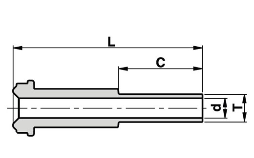 SS 316L, Long Gland Without Shoulder, 1” Face Seal x 1” O.D.