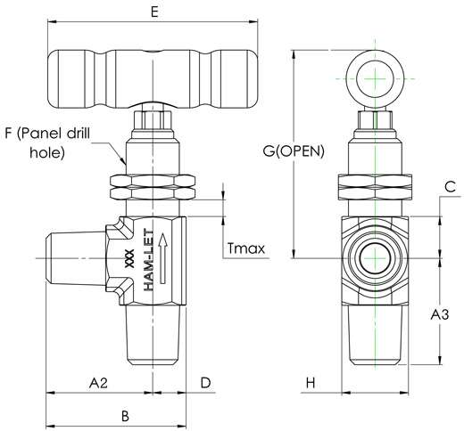 H380UBRV3/8MA, H300U Series, Angled Pattern Brass Needle Valve, 3/8” Male BSPT x 3/8” Male BSPT