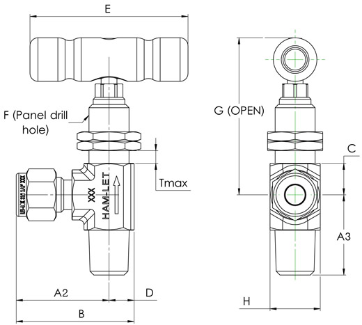 H395UBNHLV1/8MA, H300U Series, Angled Pattern Brass Needle Valve, 1/8” Male NPT x 1/8” One-Lok® Tube Fitting