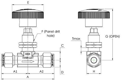 H300U Series, SS Needle Valve, 12mm Let-Lok® Tube Fitting x 12mm Let-Lok® Tube Fitting