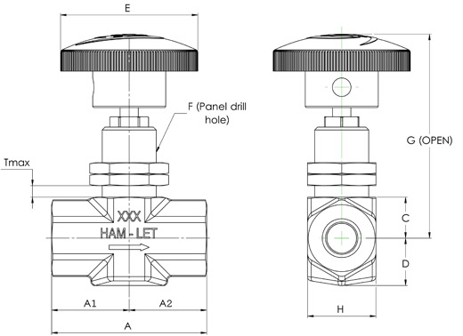 H300U Series, Brass Needle Valve, 1/4” Female BSPT x 1/4” Female BSPT