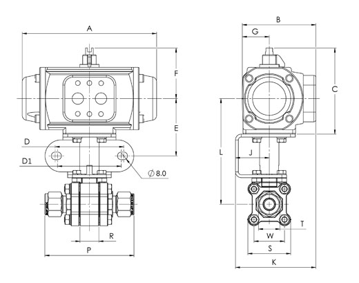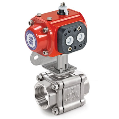 H500 Series, 3 Piece SS Ball Valve, 3/4”, Female BSPT Thread, Double Acting Actuator