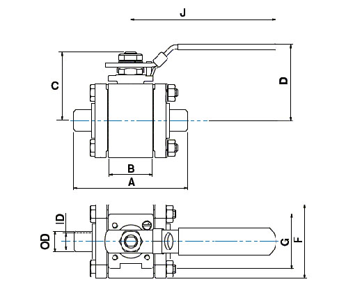 H500 Series, 3 Piece SS Ball Valve, 1” Pipe Butt Weld sch40 x 1” Pipe Butt Weld sch40