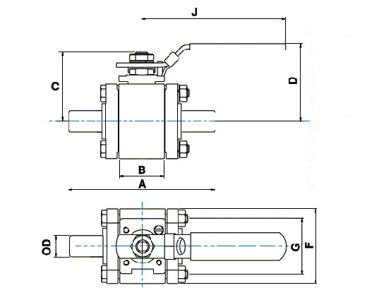 H500 Series, 3 Piece SS Ball Valve, 6mm Tube Butt Weld x 6mm Tube Butt Weld