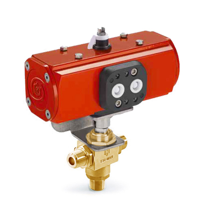 H6800 Series, 3 Piece 3 Port Pattern Brass Ball Valve, 1/2” Male BSPT x 1/2” Male BSPT, Double Acting Actuator
