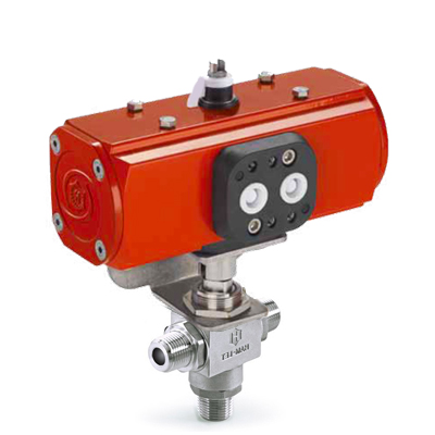 H6800 Series, 3 Piece 3 Port Pattern SS Ball Valve, 3/8” Male BSPT x 3/8” Male BSPT, Spring Return Actuator