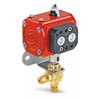 H6800BHL18MMIPAA1C, H6800 Series, 3 Piece Angled Pattern Brass Ball Valve, 18mm One-Lok® Tube Fitting x 18mm One-Lok® Tube Fitting, Spring Return Actuator