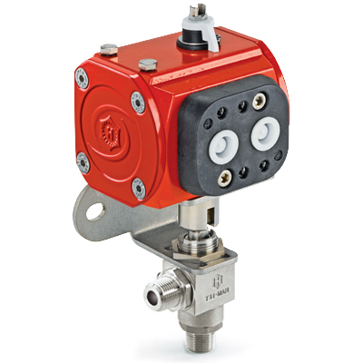 H6800 Series, 3 Piece Angled Pattern SS Ball Valve, 3/8” Male BSPT x 3/8” Male BSPT, Double Acting Actuator