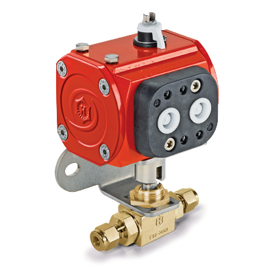 H6800 Series, 3 Piece Brass Ball Valve, 8mm Let-Lok® Tube Fitting x 8mm Let-Lok® Tube Fitting, Double Acting Actuator