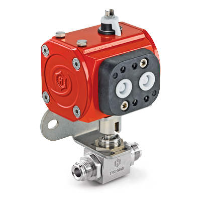 H6800 Series, 3 Piece SS Ball Valve, 1/4” Male Face Seal x 1/4” Male Face Seal, Spring Return Actuator